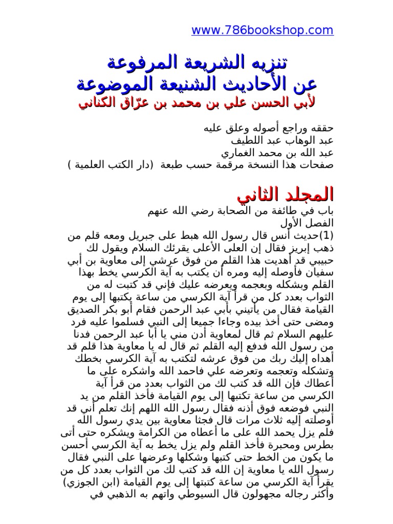 تنزيه الشريعة المرفوعةعن الأحاديث الشنيعة الموضوعة 2