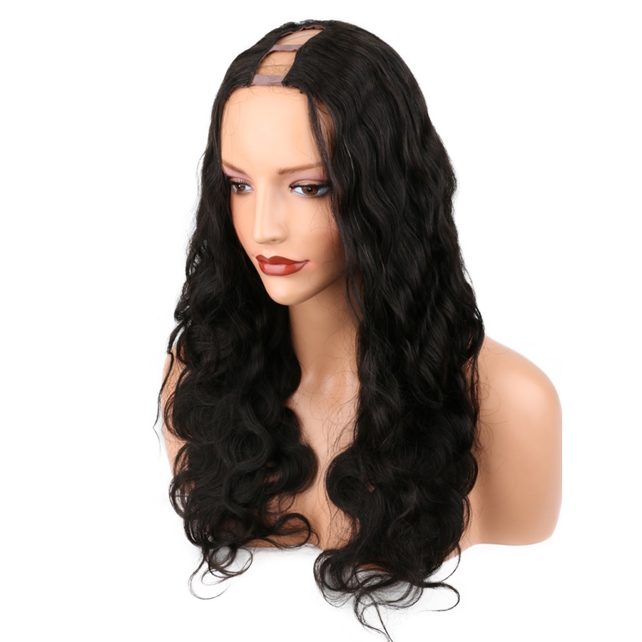 باروكة ويفى شعر طبيعى برازيلى اسود مموج يو بارت طول 18 انش Sharysa